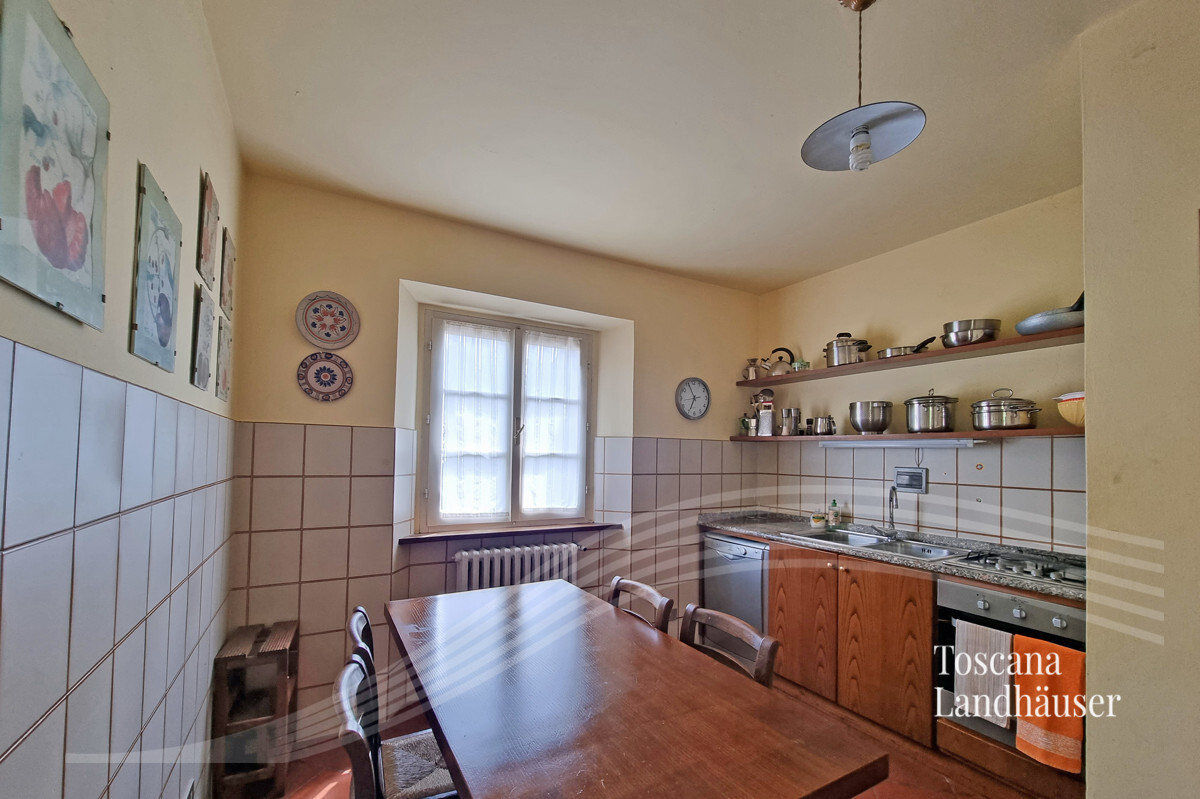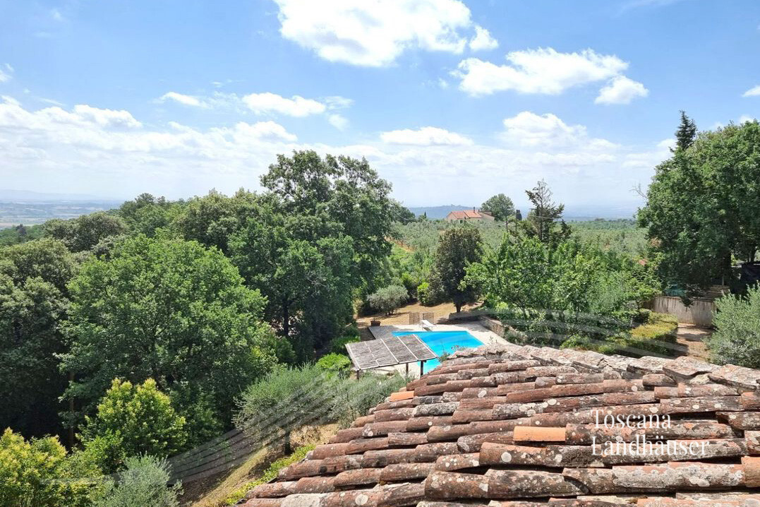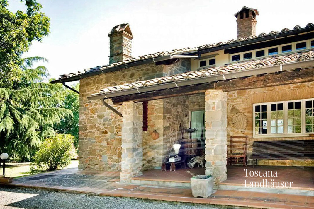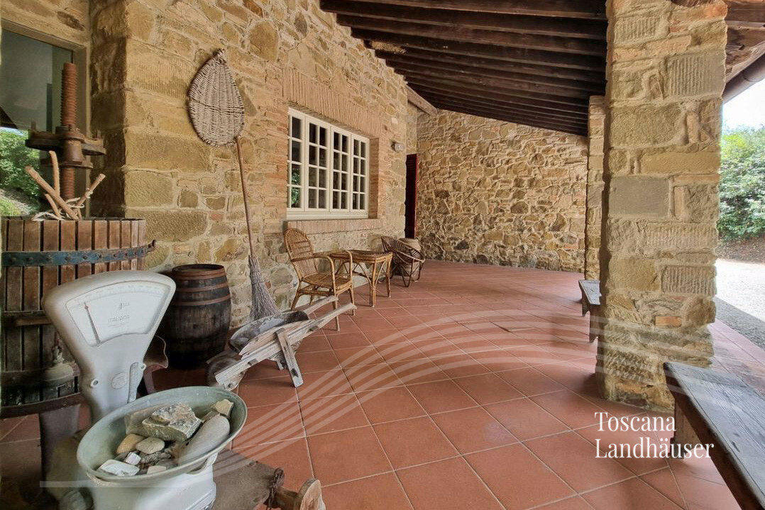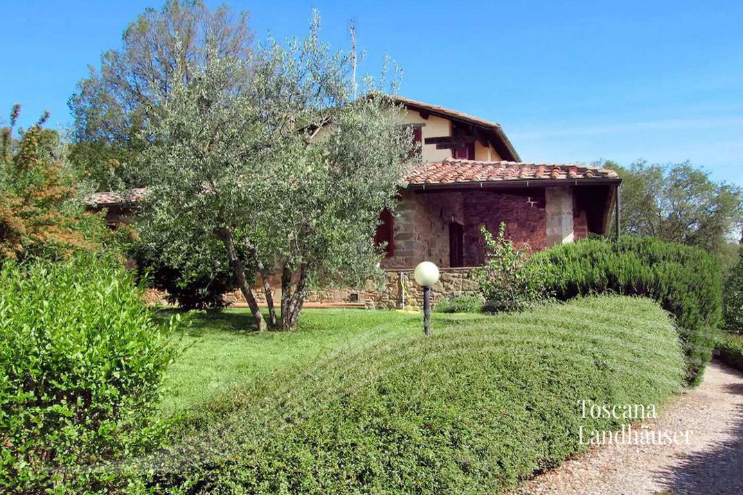 In the middle of the green hills of Monte San Savino is this natural stone house. It offers a living area of about 350 sqm on three levels and a garden of about 3,820 sqm with pool. The typical farmhouse has terracotta floors and wooden beams, creating a cozy atmosphere in harmony with the surroundings. It is suitable as a main or vacation residence due to its location and the layout of the premises, although tourist rental is also possible.