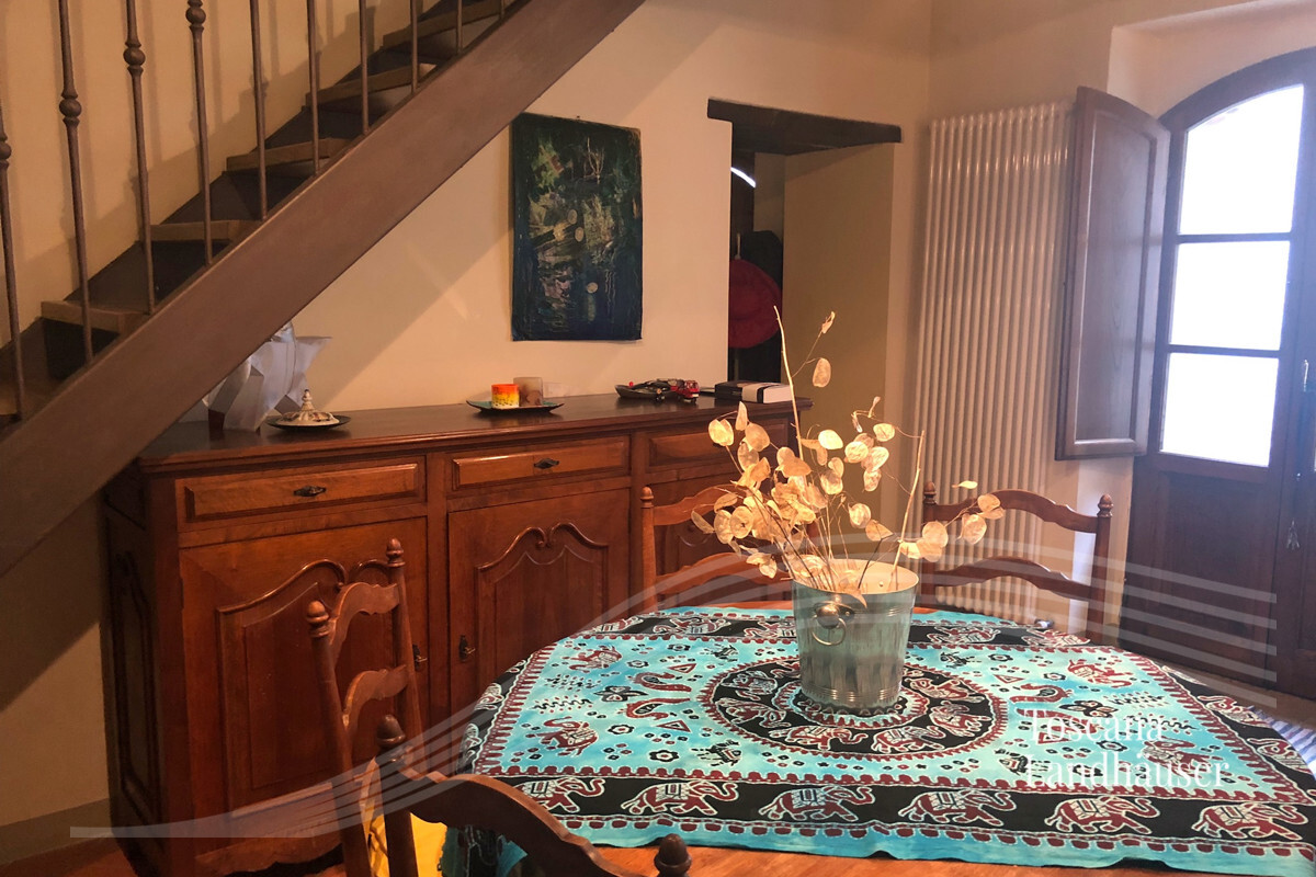 House share in the heart of a small hamlet. The house is detached on three sides and offers a living area of about 92 m² on two levels. The building was completely renovated in 2007 and features high exposed beams ceilings and Tuscan terracotta floors.