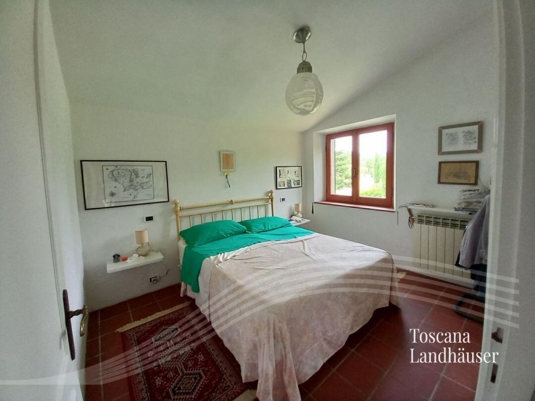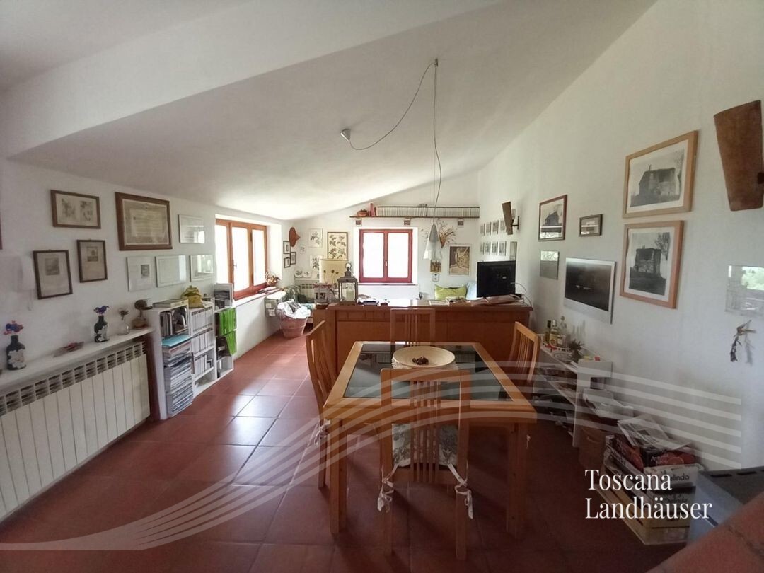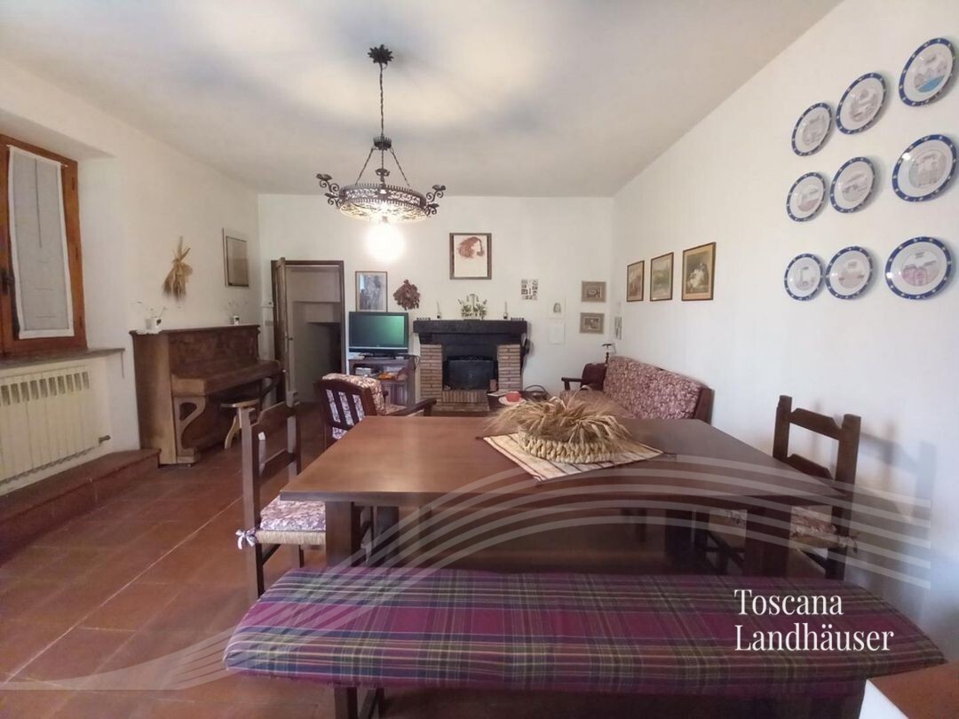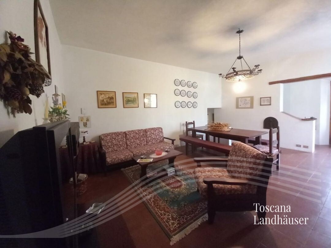 Typical Tuscan farmhouse located only about 2 km from the nearest larger village. The property offers a living area of about 200 m² on two levels and is divided into two residential units. From the rustico you can enjoy a magnificent panoramic view of the surrounding countryside and the Val d'Orcia.