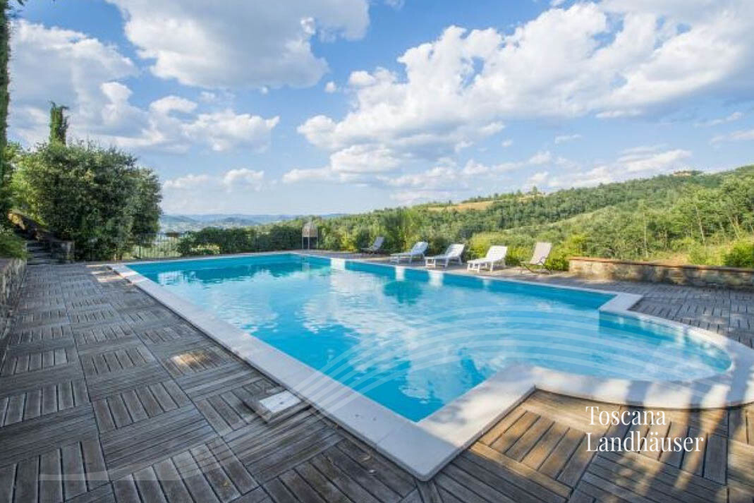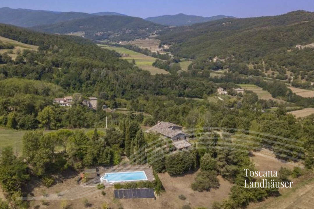 In a beautiful panoramic location - not far from the next larger village - is this farmhouse with a living area of about 243 m² on two levels. The house is surrounded by a garden of approx. 5,167 m², here you will also find the pool of approx. 6 x 12 m. Due to its location and equipment, the rustico is suitable as a permanent residence, vacation property or also for tourist rental.