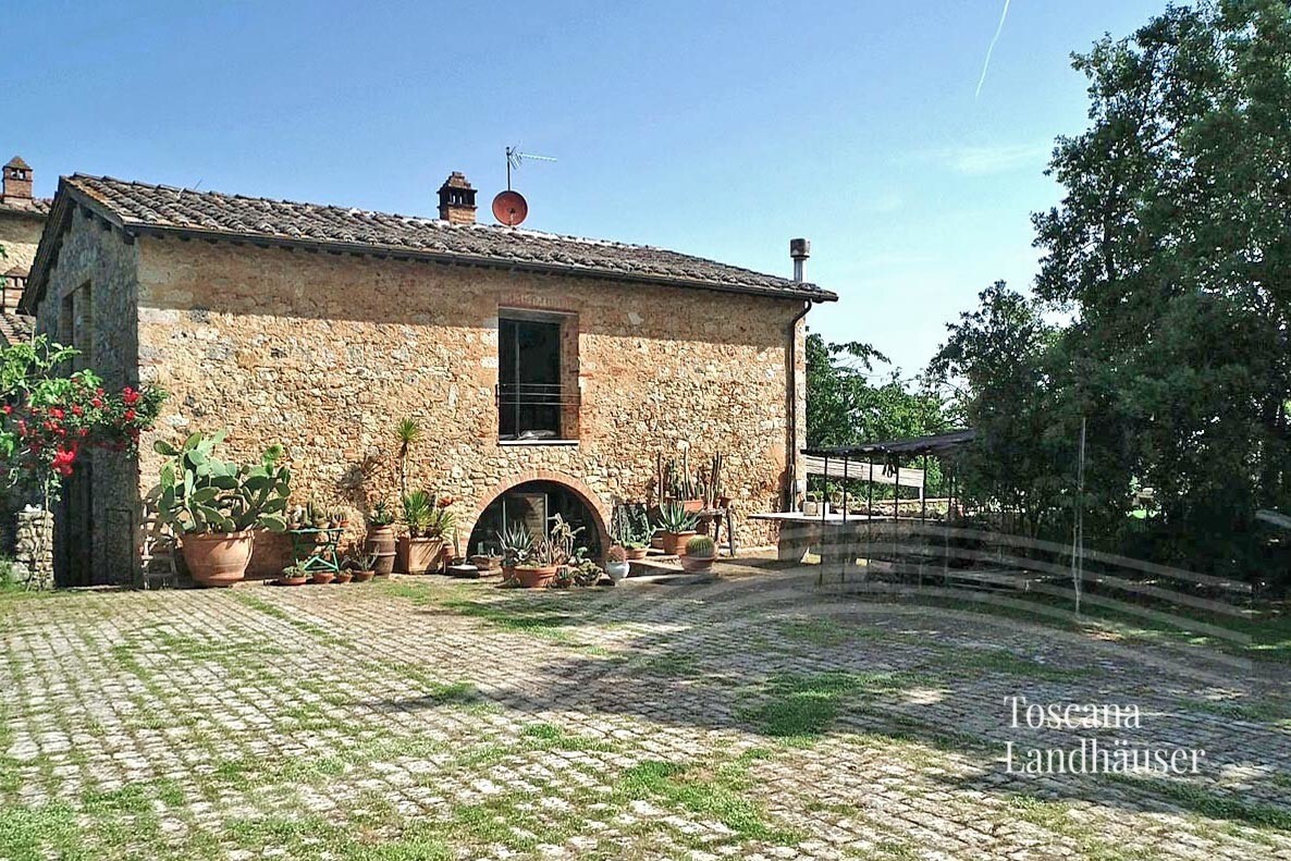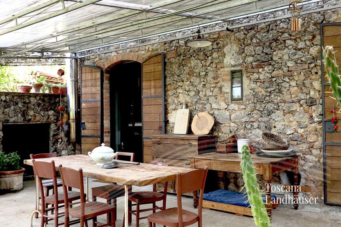 Renovated rustico in modern open style in a small borgo in peripheral position, just a few kilometers from Siena. To the rustico belong about 2.000 m² of garden with a small olive grove. The Rustico is ready to move in, on two levels, with a net living area of approx.186 m².
