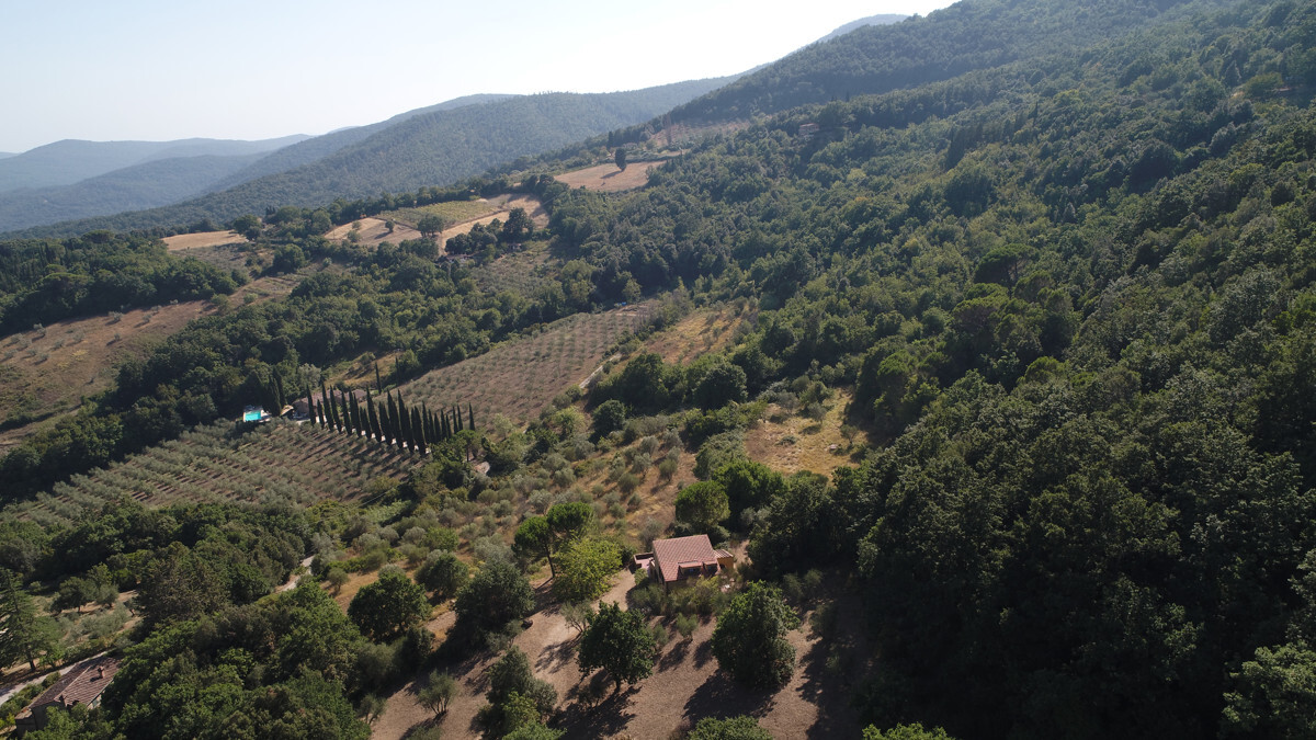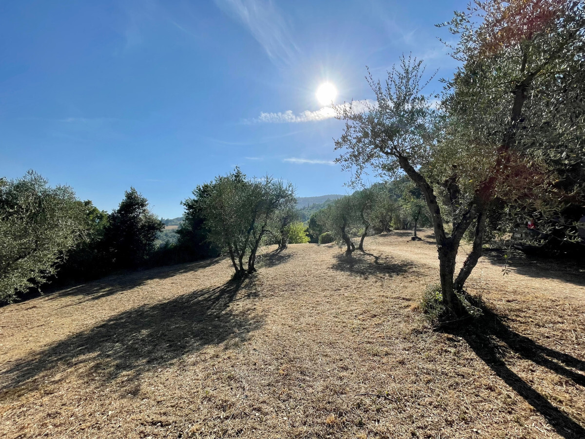 Zum Anwesen gehören ca. 5 ha Land mit 100 tragenden Olivenbäumen und anderen Obstbäumen, 1,25 ha Wald und 1,25 ha Kulturland (als Olivenhain katastal ausgewiesen), das leicht zu pflegen ist und gleichzeitig maximale Privacy bietet. Der Bau eines Schwimmbads ist möglich. Die Zufahrt führt über eine ca. 400 Meter lange Schotterstrasse.