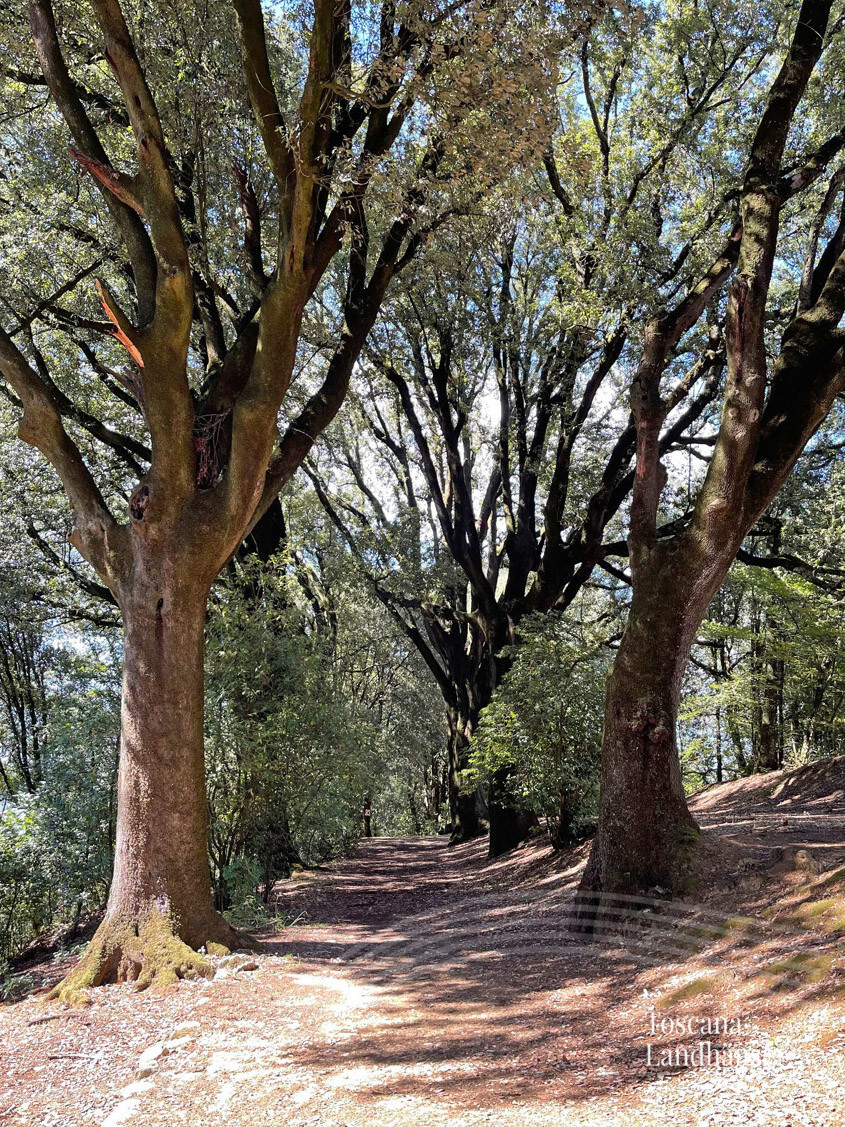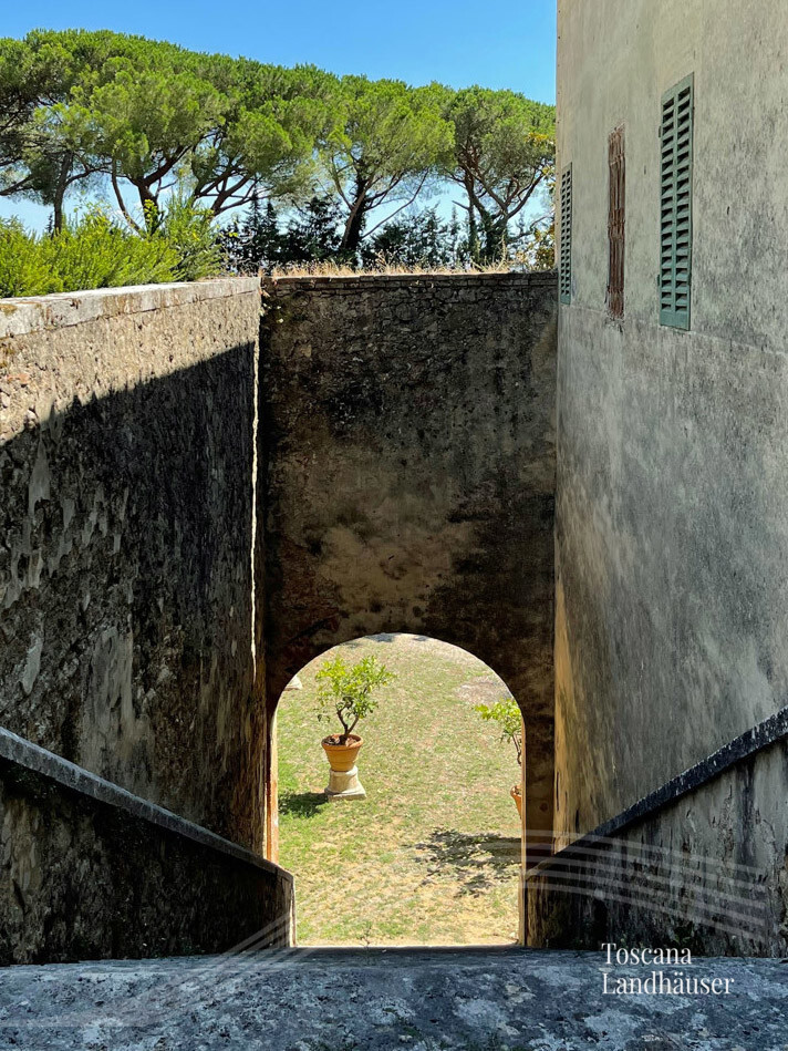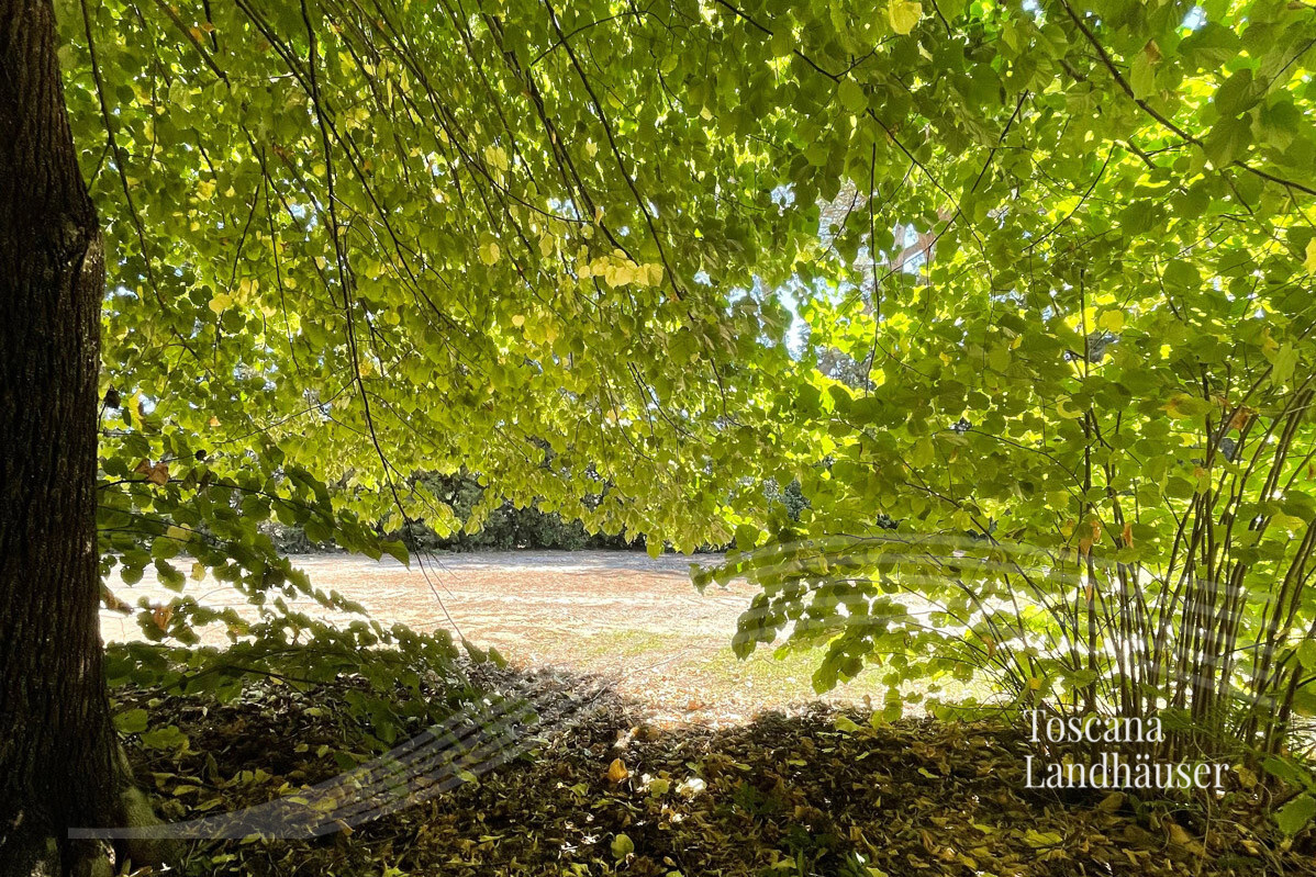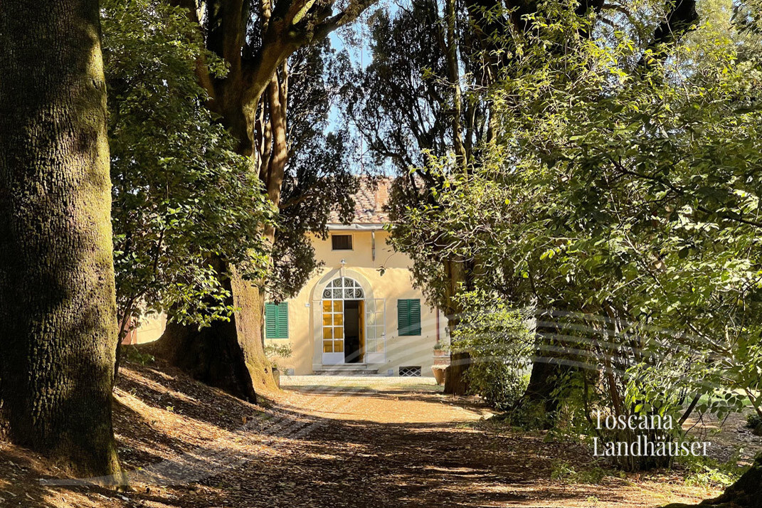 Um die Villa herum befinden sich die Anlagen eines italienischen Gartens, mit verschiedenen Buchsbaumhecken, Bepflanzungen und künstliche Seen. Eine Allee aus jahrhundertealten Steineichen führt von der Villa hinauf zum Park, eine weitere Olivenbaumallee führt bis an eine 700 Jahre alte Kirche.