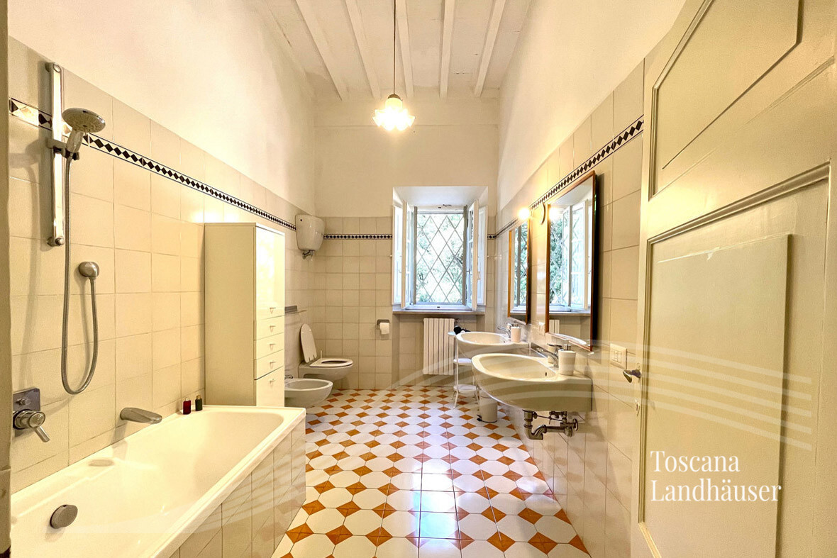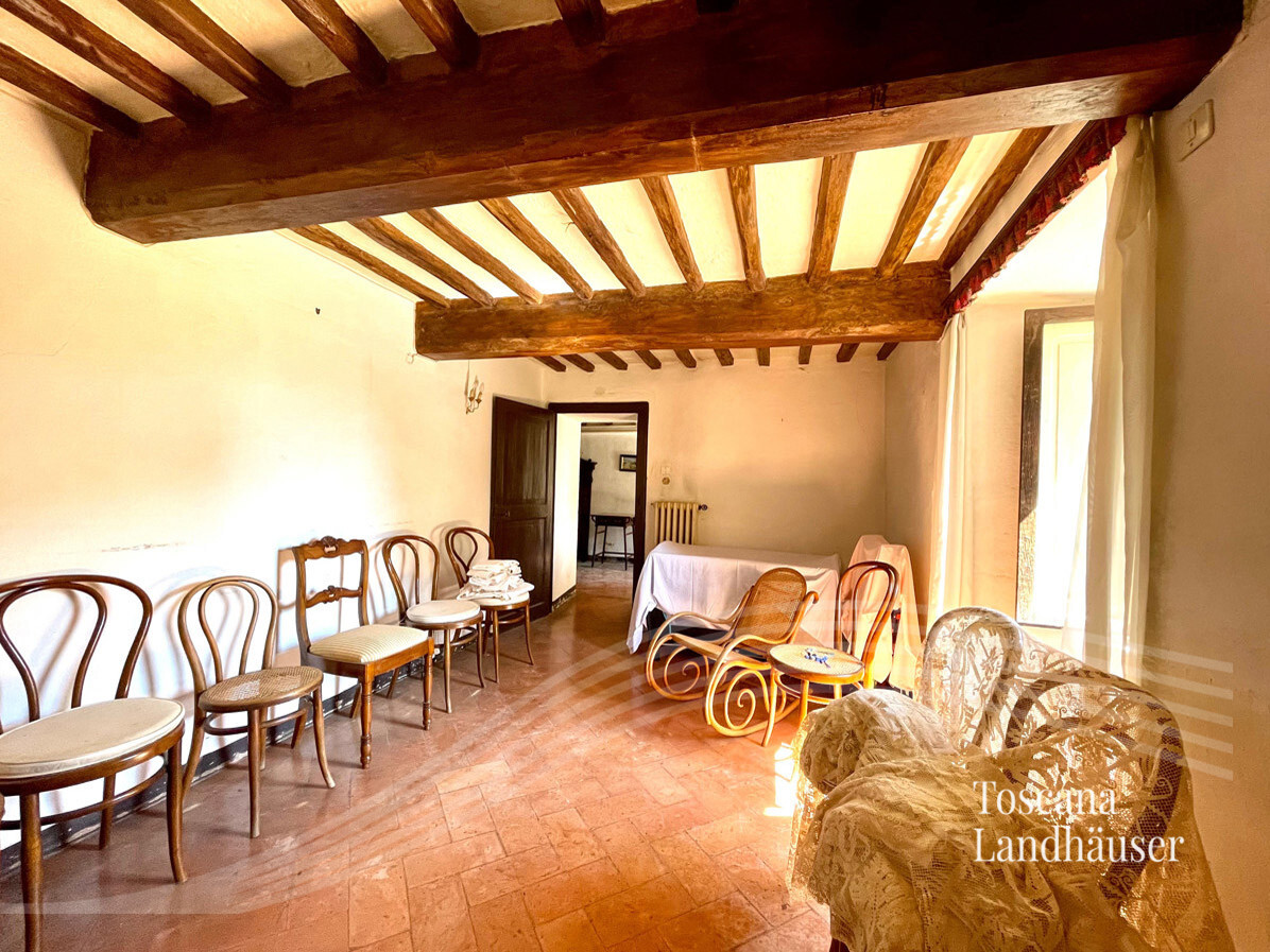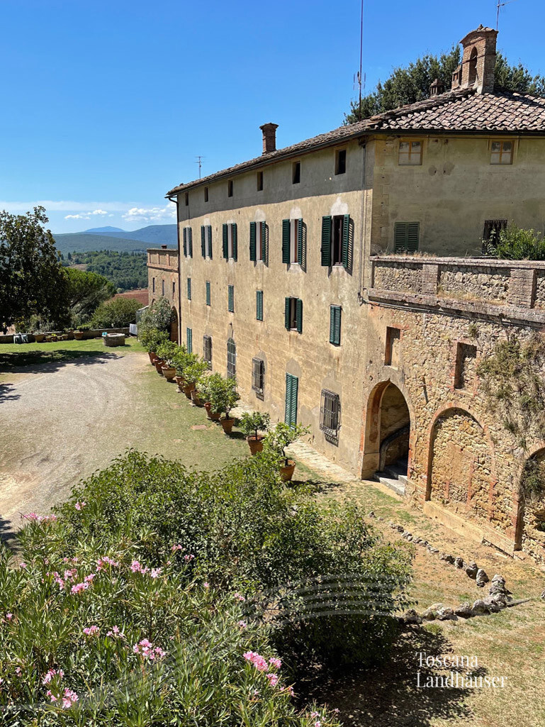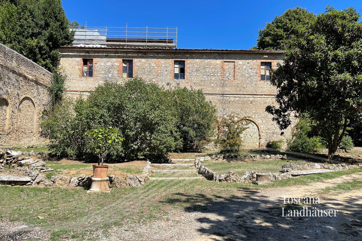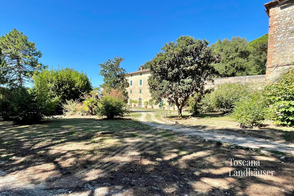 Nahe zum Stadtzentrum von Siena befindet sich dieses traumhafte Anwesen in Hügellage eingeb ettet ins Grüne, bestehend aus einer großen Villa, einem ehemaligen Kornspeicher mit Cantina, Pferdestallungen, sowie einer Manege und einem Parcours für Pferde. Das gesamte Anwesen ist von insgesamt ca. 40 ha Land umgeben. In direkter Nachbarschaft befindet sich ein Gebäude was für Eigentumswohnungen ausgebaut wird.