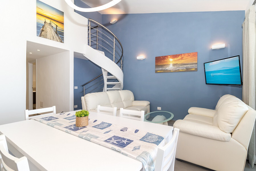 Dieses Apartment mit einer Wohnfläche von ca. 100 m² befindet sich in einer Anlage mit insgesamt 14 Wohneinheiten nur ca. 550 Meter Luftlinie vom Meer entfernt. Das Apartment ist nach Westen hin ausgerichtet und bietet einen wunderschönen Meerblick. Eine schöne Terrasse mit genug Platz für eine Essgarnitur - um die Mahlzeiten mit einem herrlichen Blick aufs Meer zu genießen - rundet dieses Apartment ab.