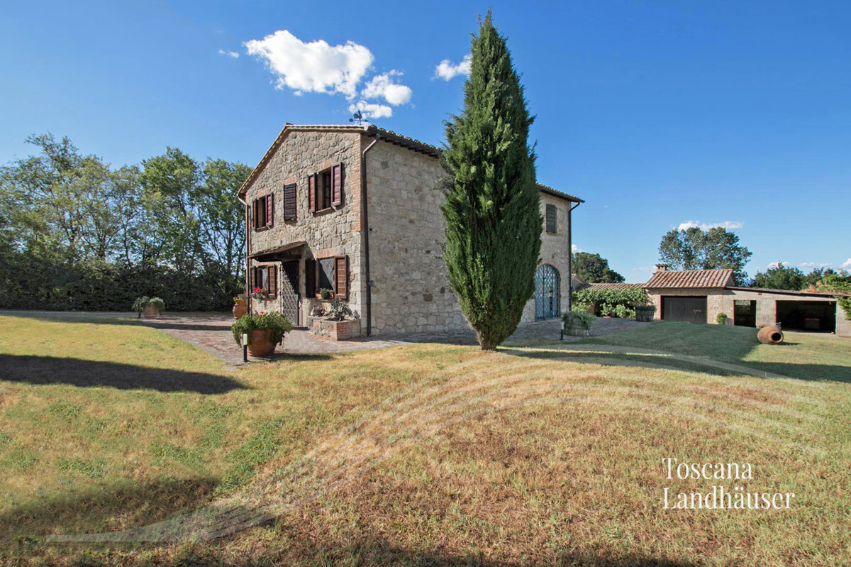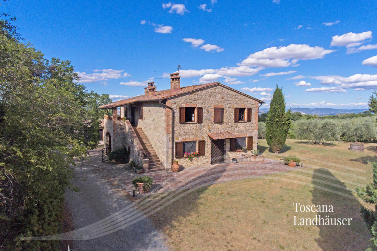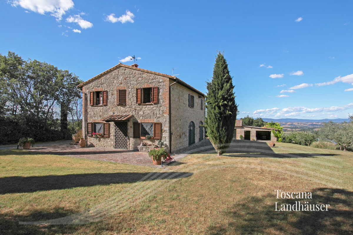 Inmitten der toskanischen Hügellandschaft mit einem atemberaubenden Blick über das Tal der Seen befindet sich dieses charmante Bauernhaus. Es wurde in den 50'ziger Jahren erbaut und Anfang der 60'ziger Jahre grundrenoviert. Dabei wurden alle typische toskanischen Materialien - wie freiliegende Balken und Terrakottaböden - erhalten. Die Wohnfläche von ca. 264 m² erstreckt sich auf zwei Ebenen, zudem gibt es einen großen Steinanbau mit ca. 129 m² Nutzfläche.