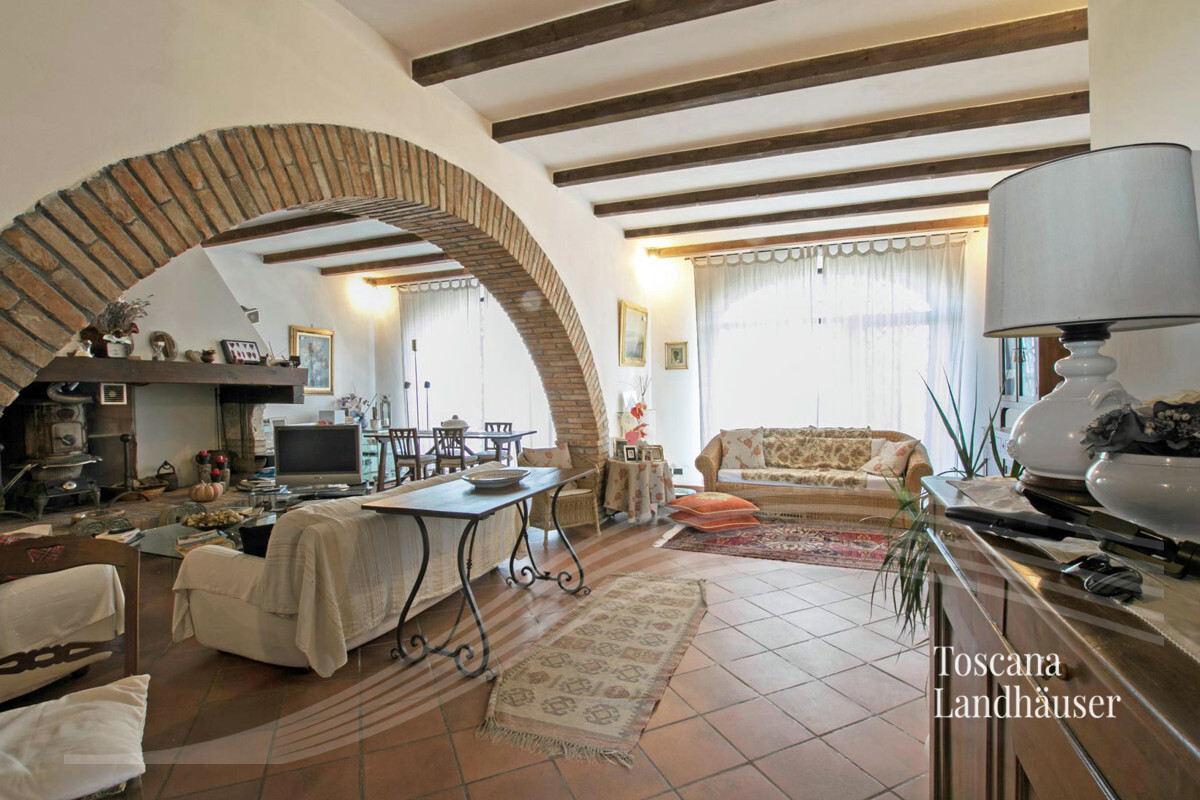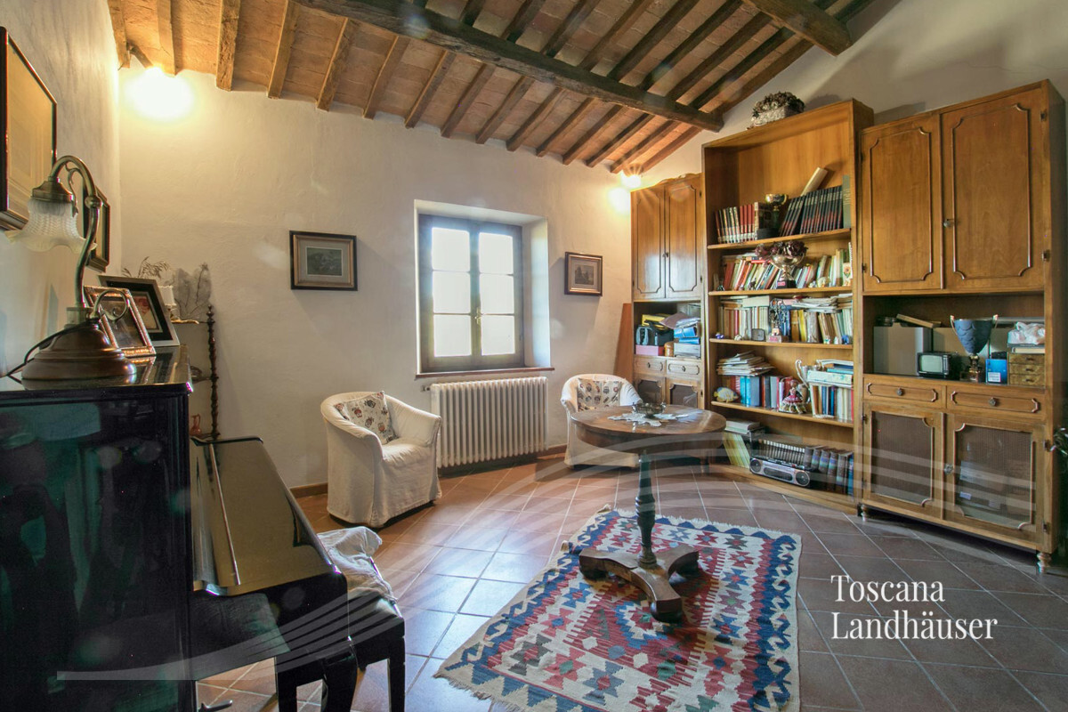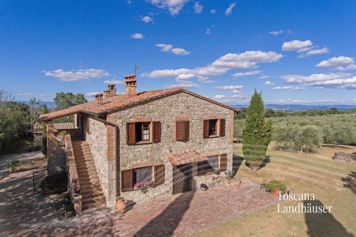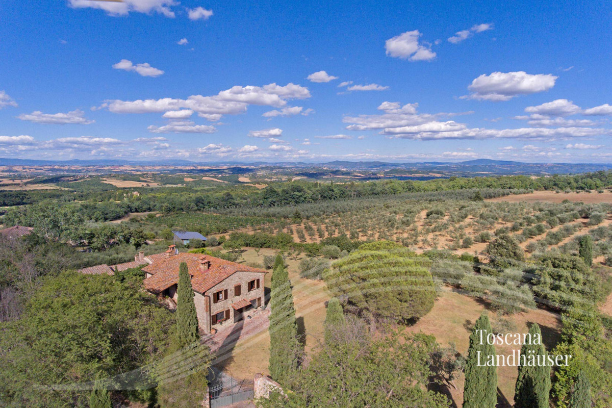 Inmitten der toskanischen Hügellandschaft mit einem atemberaubenden Blick über das Tal der Seen befindet sich dieses charmante Bauernhaus. Es wurde in den 50'ziger Jahren erbaut und Anfang der 60'ziger Jahre grundrenoviert. Dabei wurden alle typische toskanischen Materialien - wie freiliegende Balken und Terrakottaböden - erhalten. Die Wohnfläche von ca. 264 m² erstreckt sich auf zwei Ebenen, zudem gibt es einen großen Steinanbau mit ca. 129 m² Nutzfläche.