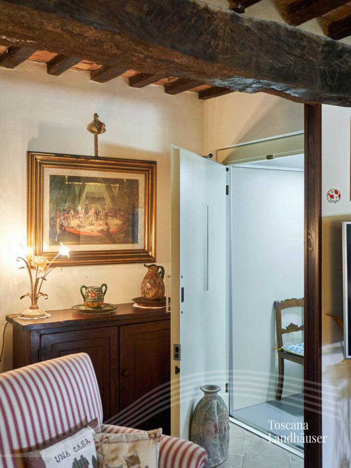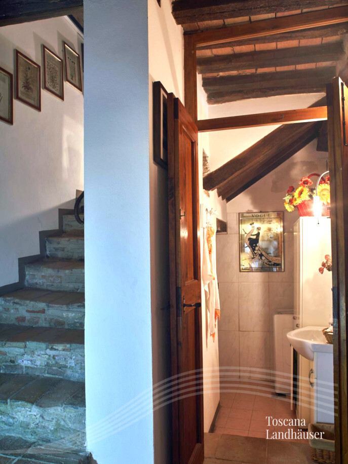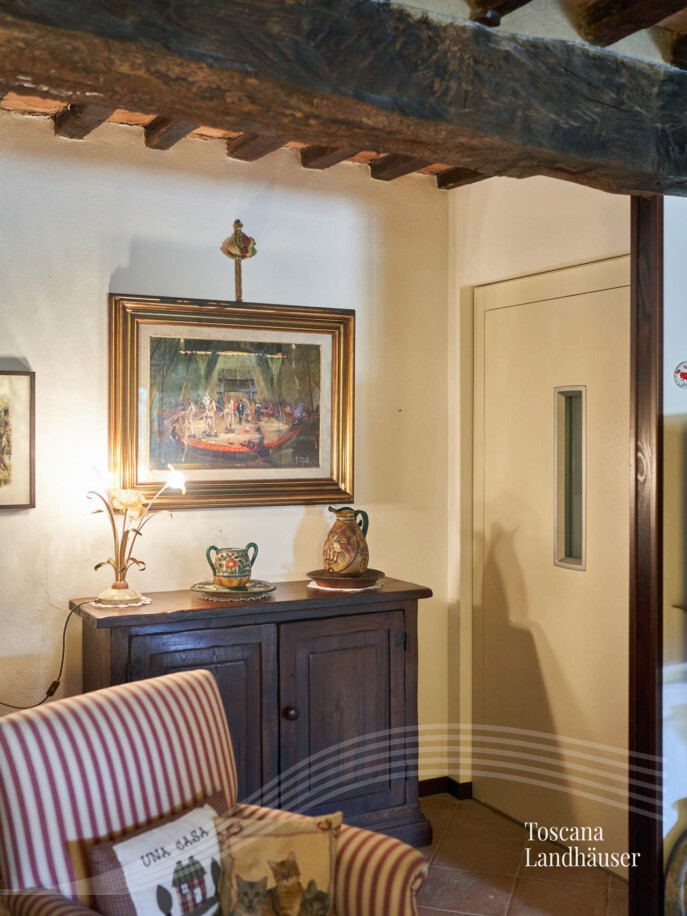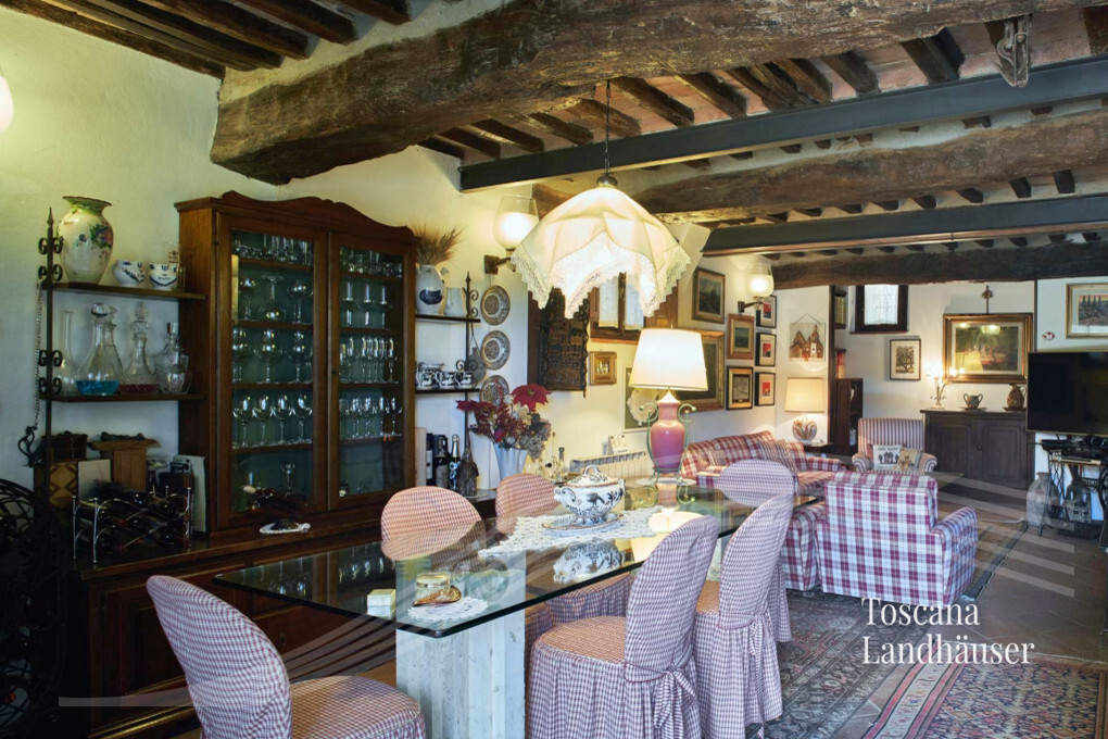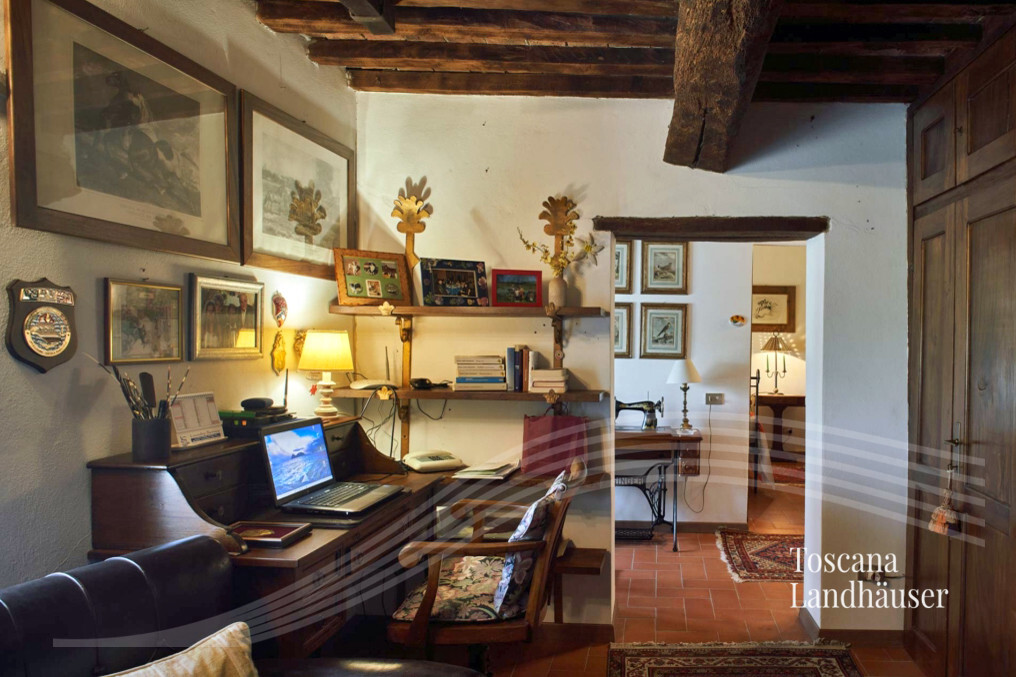 Ehemalige Schmiede welche auf das 17. Jhdt. zurück geht - an drei Seiten freistehend - mit insgesamt ca. 195 m² Wohnfläche auf drei Ebenen. Das charmante Rustico befindet sich in einem kleinem Weiler im Herzen des Chianti Classico Gebietes. Das Anwesen ist nur wenige Kilometer von Siena entfernt. Es wurde liebevoll renoviert und besticht durch die typischen Holzbalkendecken und Cotto- Fliesen. Ein weiteres Highlight ist das Turmzimmer und ein - gut versteckter Aufzug - welcher zusätzlich zur Treppe - das Erdgeschoß mit dem ersten Stockwerk verbindet.