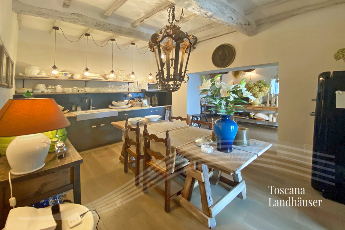 In den grünen Hügeln von Loro Ciuffenna befindet sich dieses romantische Rustico mit einer Wohnfläche von ca. 222 m² auf zwei Ebenen und einem ca. 8.779 m² großen Grund. Das Haus hat Wurzeln aus dem 19. Jhdt. und wurde im Jahr 2013 komplett renoviert. Hierbei wurde besonders auf hochwertige - und typisch toskanische - Materialien Wert gelegt. Das Anwesen eignet sich als Ferienimmobilie, dauerhafter Wohnsitz, sowie zur touristischen Vermietung.