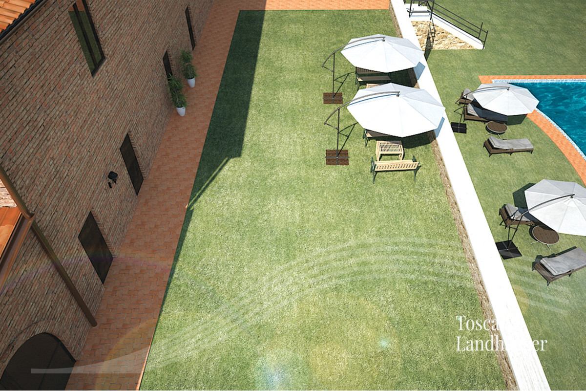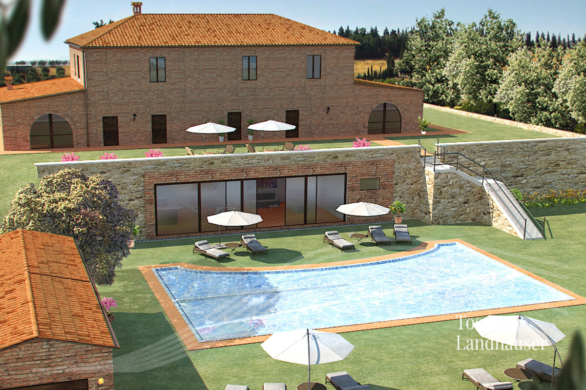 Tipica casa colonica senese con una superficie di circa 500 m² e circa 14,28 ha di terreno. La proprietà risale al 1890 ed è composta da un grande edificio su due livelli.